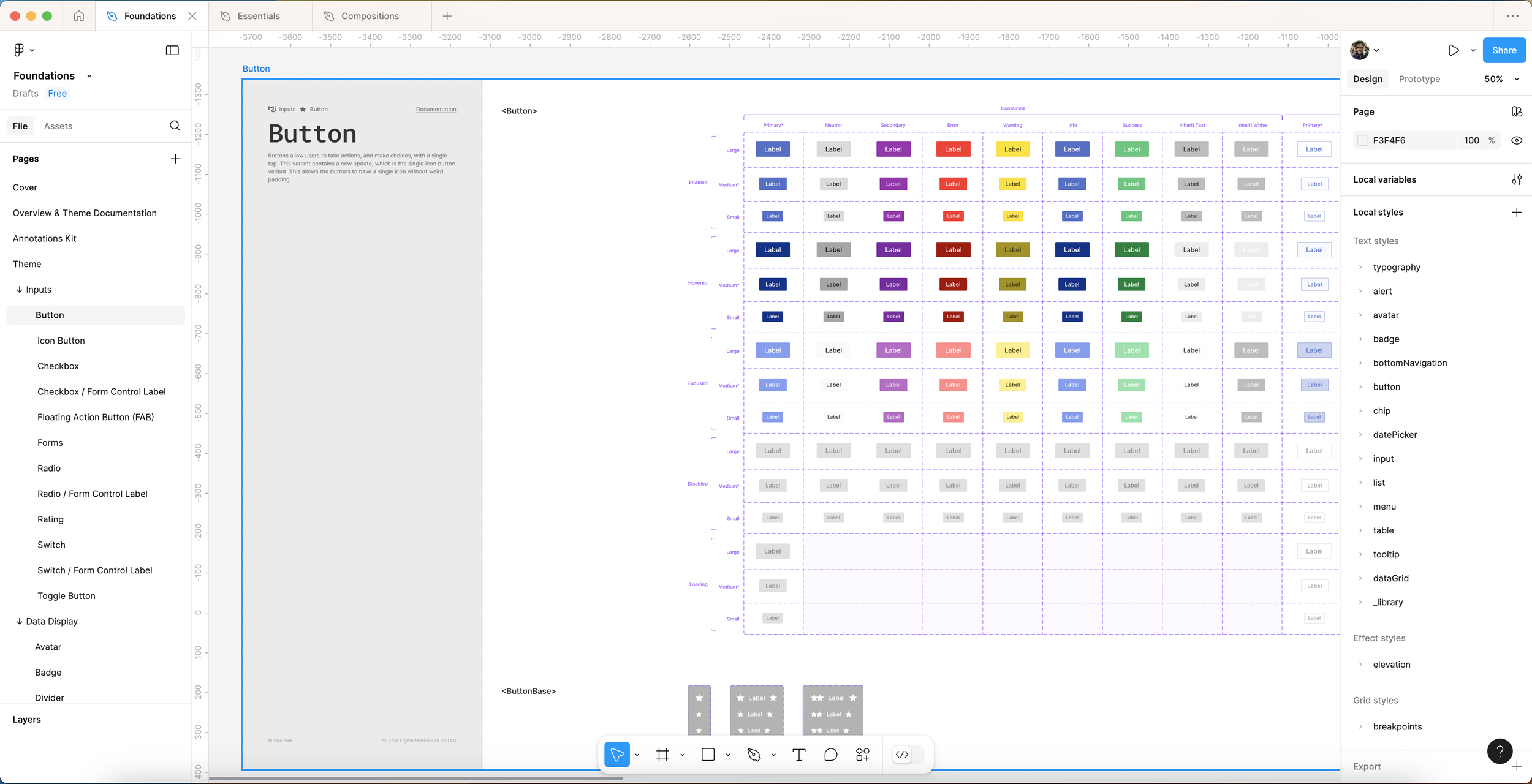 Core UI elements (colors, typography, buttons, inputs, etc).